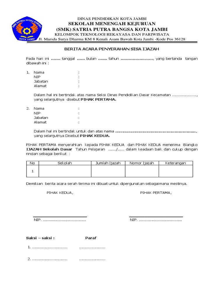 19 Contoh Surat Berita Acara Serah Terima Ijazah from imgv2-2-f.scribdassets.com Contoh surat tanda terima barang inventaris perusahaan. Adapun tampilan dari dokumen yang akan kami bagikan adalah seperti gambar dibawah ini: Pada kwitansi tanda terima, agar menjadi keren anda bisa menambahkan logo perusahaan di kwitansi tersebut. Microsoft word adalah program populer di seluruh dunia. Home microsoft word cara membuat watermark pada dokumen word. Setelah membuat dokumen dengan microsoft word, misalnya: Tanda terima dokumen tanda terima ini dibuat di jakarta pada hari, jumat tanggal 31 mei. Disini, tanda tangan yang anda bubuhkan berformat digital.